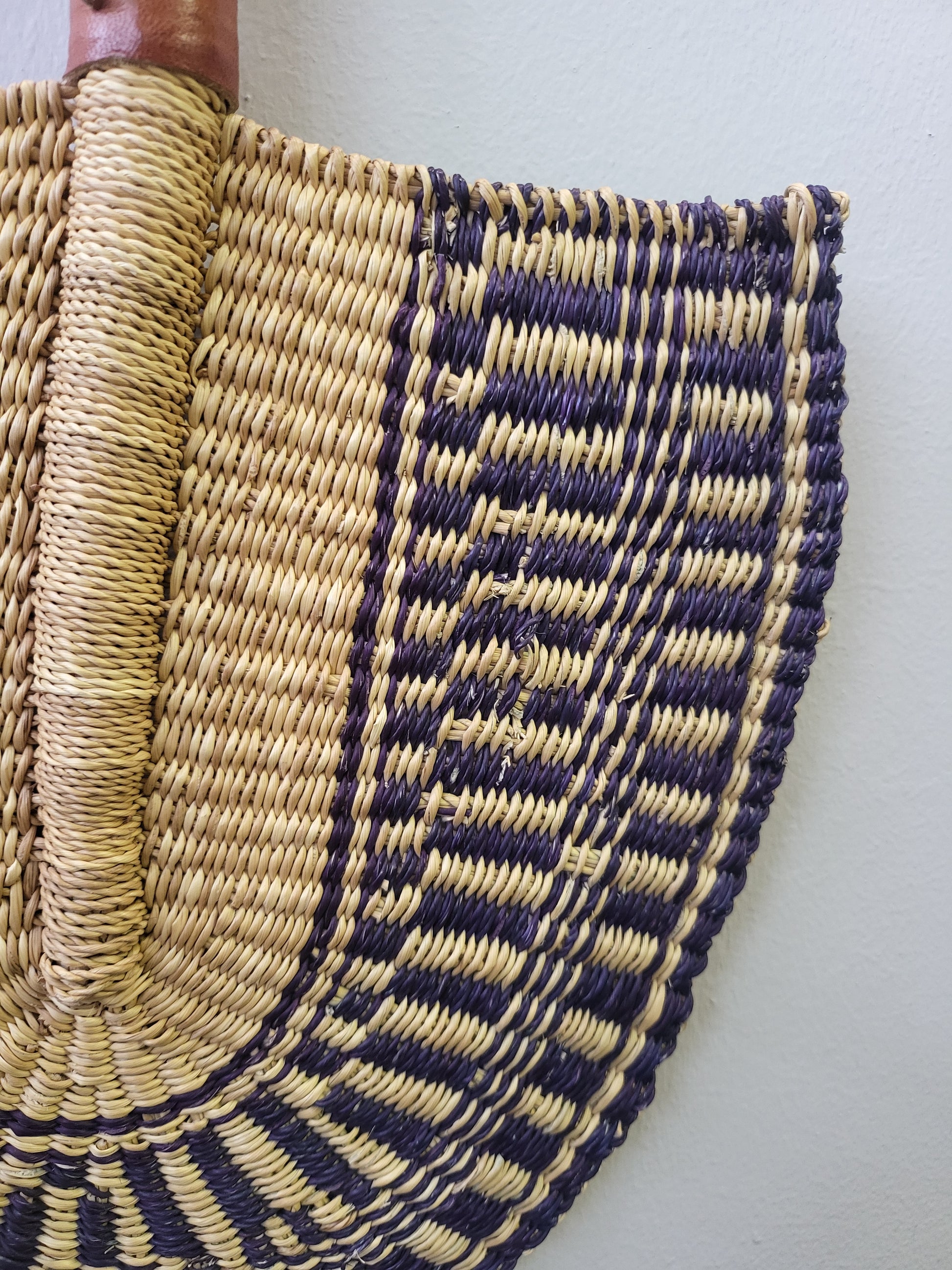 Bolga fans are gorgeous and environmentally sustainable because they are handcrafted from organic materials like elephant grass and leather. They make fashionable addition to any summer clothing and functional home decor item thanks to their distinctive design