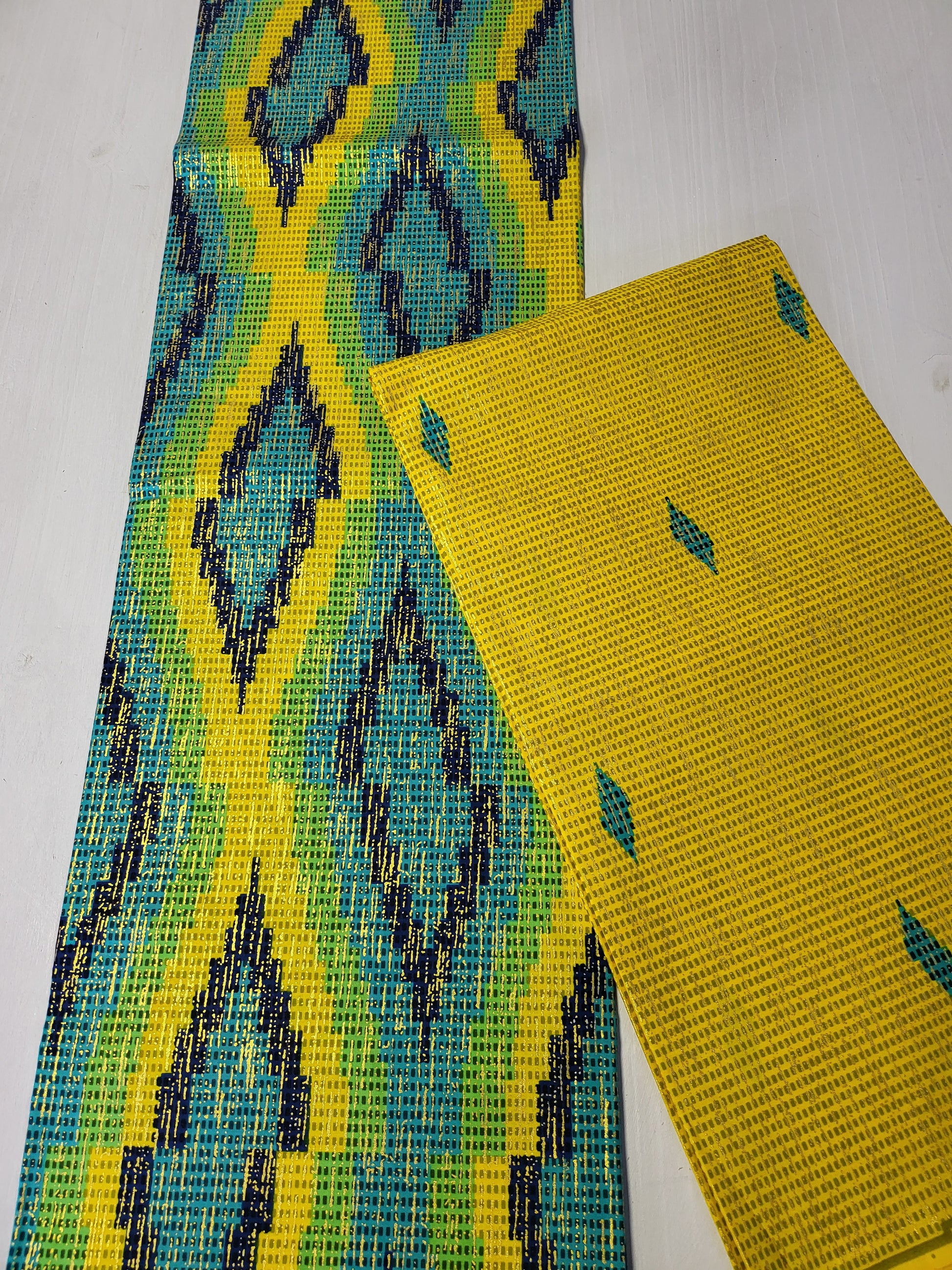 6 yards (4 yards kente pattern + 2 yards plain) = 5.5 meters (3.7 meters + 1.8 meters)