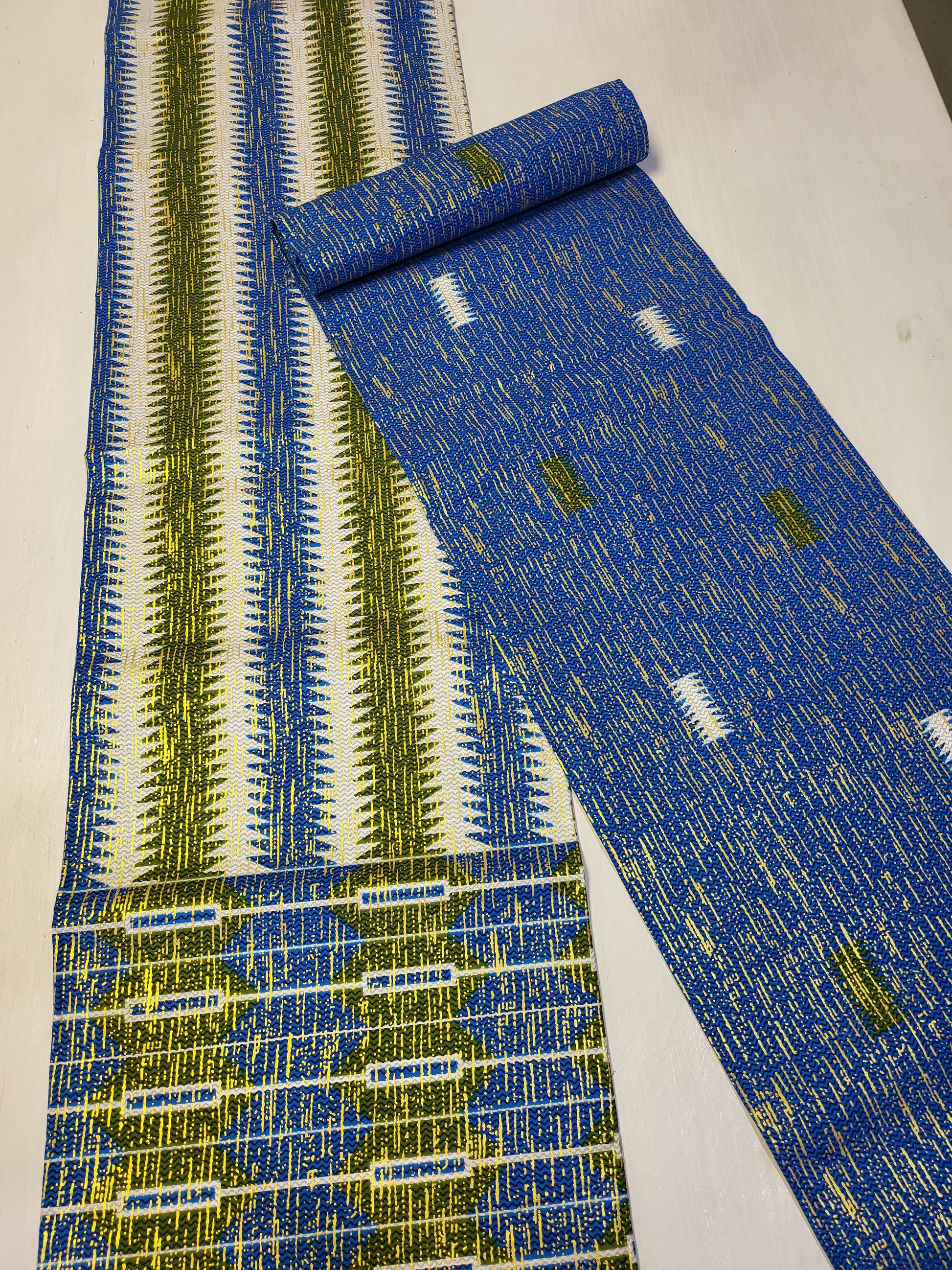 6 yards (4 yards kente pattern + 2 yards plain) = 5.5 meters (3.7 meters + 1.8 meters)
