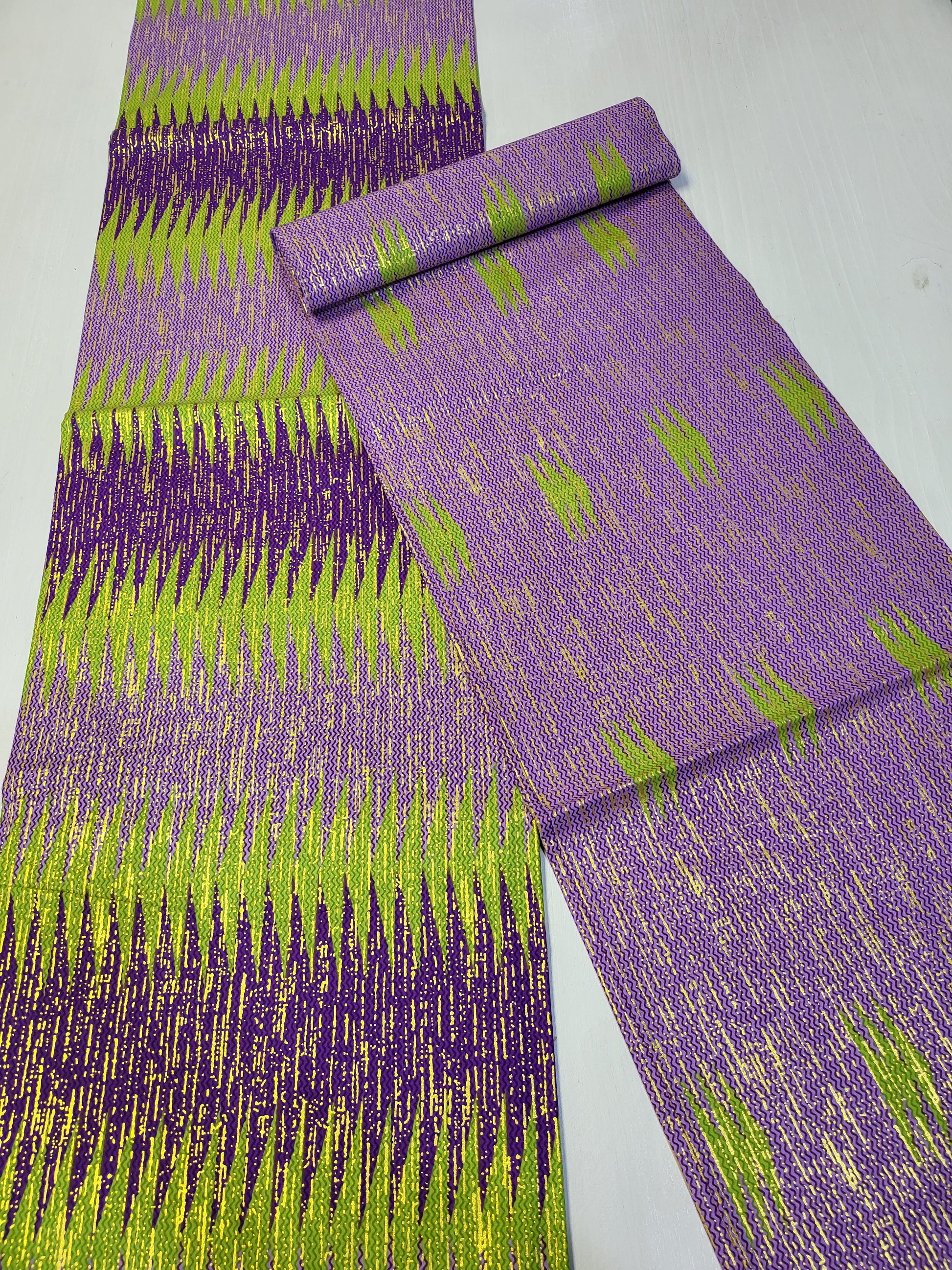 6 yards (4 yards kente pattern + 2 yards plain) = 5.5 meters (3.7 meters + 1.8 meters)